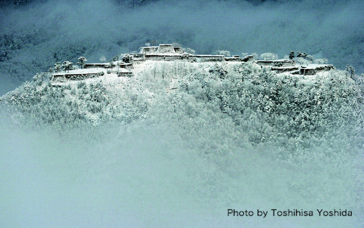 "Takeda-jo-seki(Takeda Castle Ruins)" is the nationally well-known castle ruins located atop a mountain. It is well known as "Japan's Machu Picchu" and the "Castle in the Sky" because of the surrounding clouds that give it the illusion of a floating castle. You can see the sight of the castle floating on a sea of clouds when the weather conditions are just right, usually in the early mornings of autumn and winter.and witness a miraculous autumn sight.
